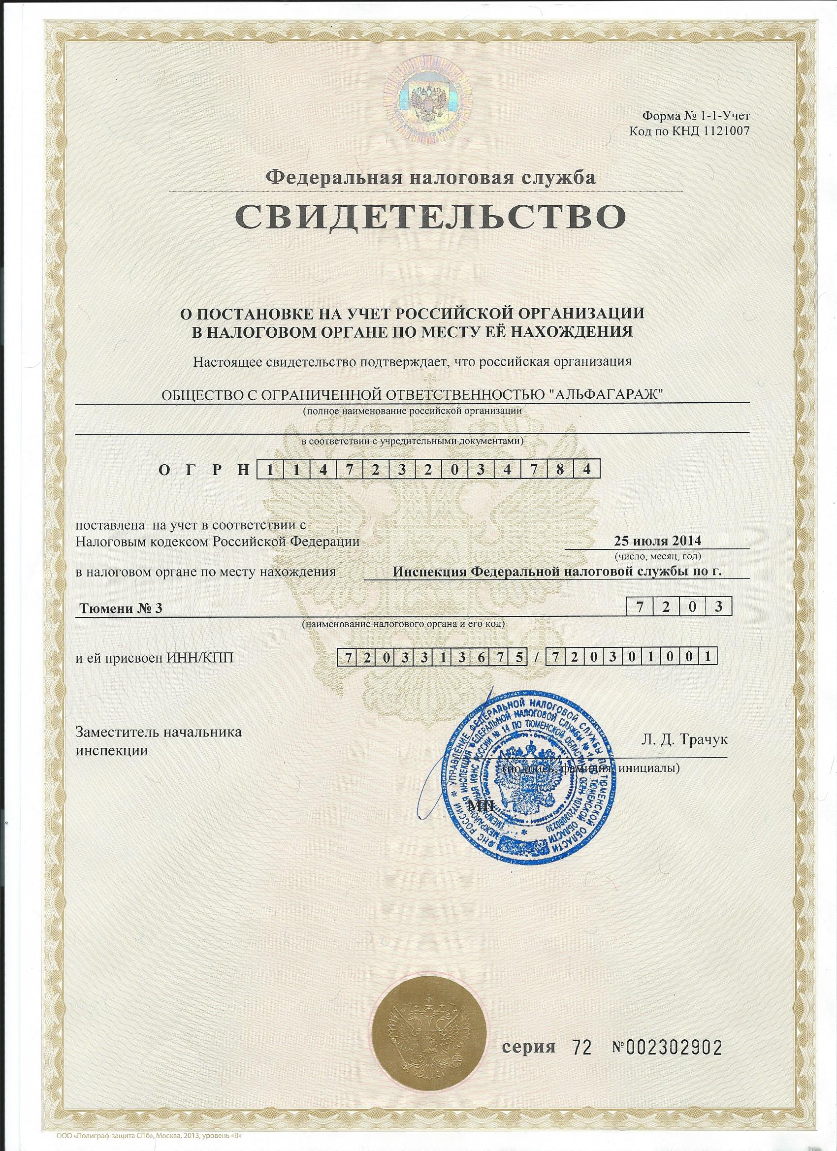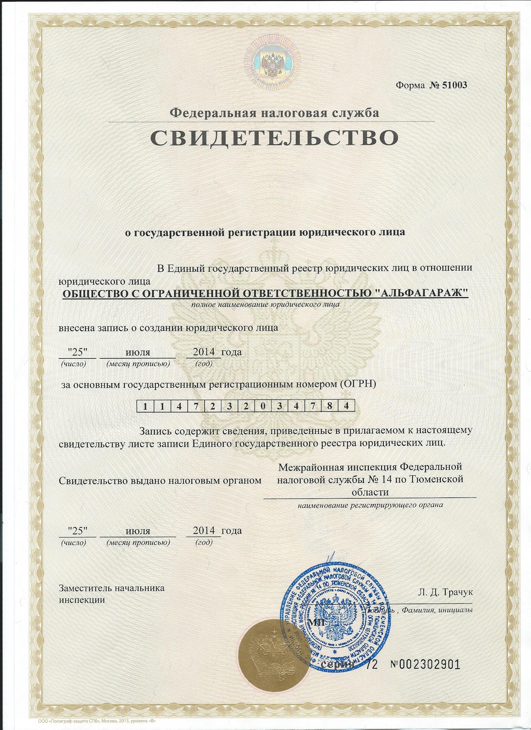 ООО «АЛЬФАГАРАЖ» ОГРН 1147232034784